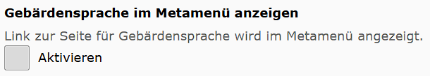 Hier kann man eine Verlinkung im Metamenü aktivieren, die auf eine Homepage mit allgemeinen Infos zur DLRG in Gebärdensprache bereitstellt.